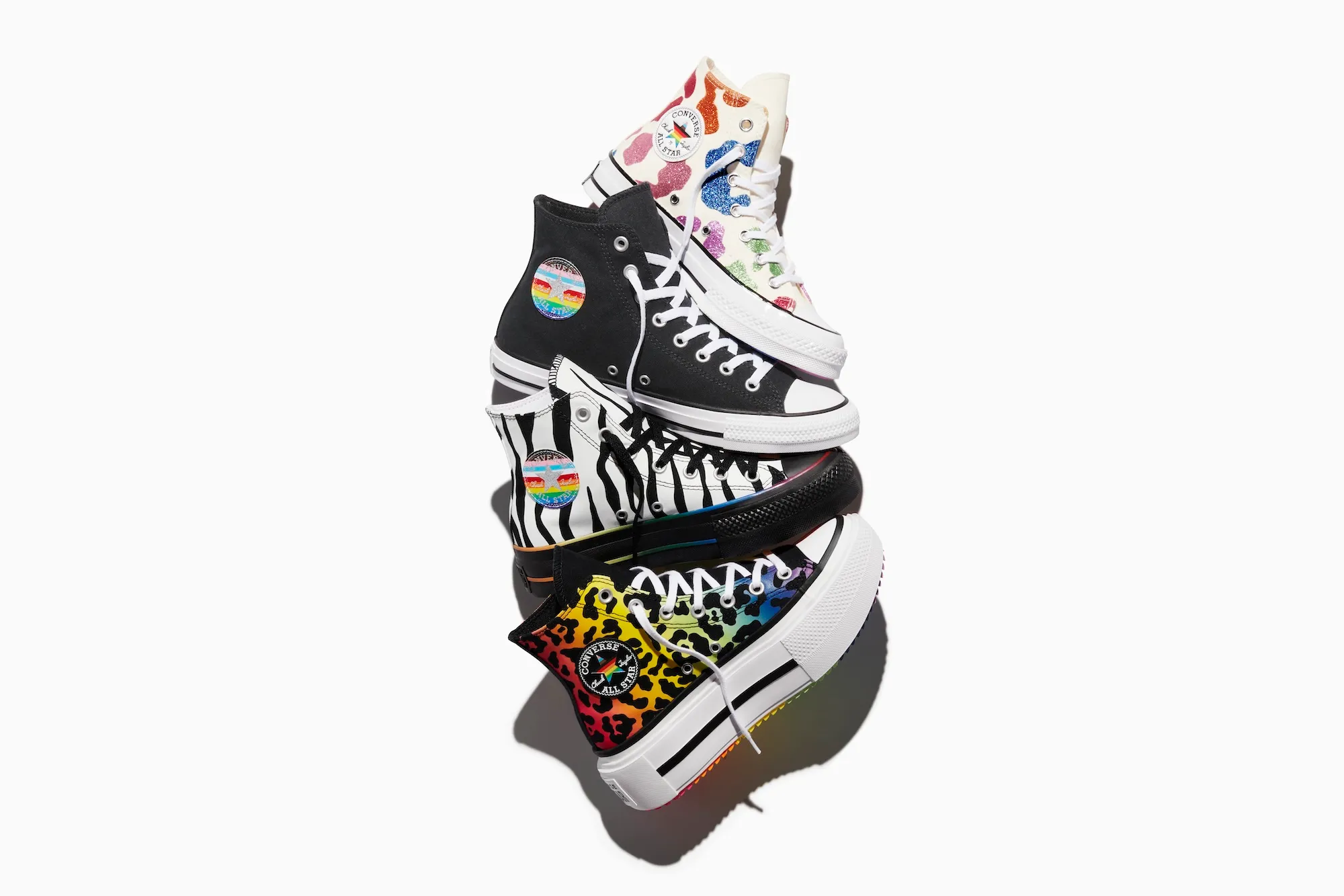 2025 Proud to Be koleksiyonu, kalın bir platform stili olan yeni Chuck Taylor All Star Lift Double Stack ve diz üstü yeni Chuck Taylor All Star XXHi’yi içeriyor.